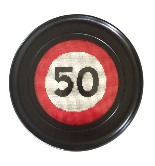There is humility and humbleness exposed and the work is more transgender in nature, less feminine almost, with exceptions such as the ‘Colour Blind’ test that flashes with light and effervescence. Jo’s abhorrence of feminine stereotypes clearly visible in the embroidered ‘50’, yet stitching softens it somehow. Not an instruction or a deterrent – its power diminished by its tactility, softness and form.