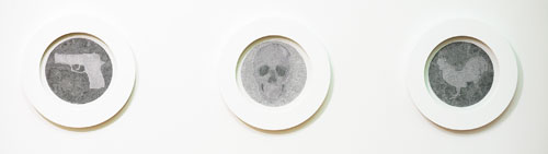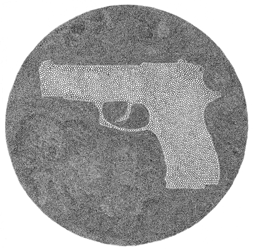 Gun - pen & ink on paper framed 510 X 510mm