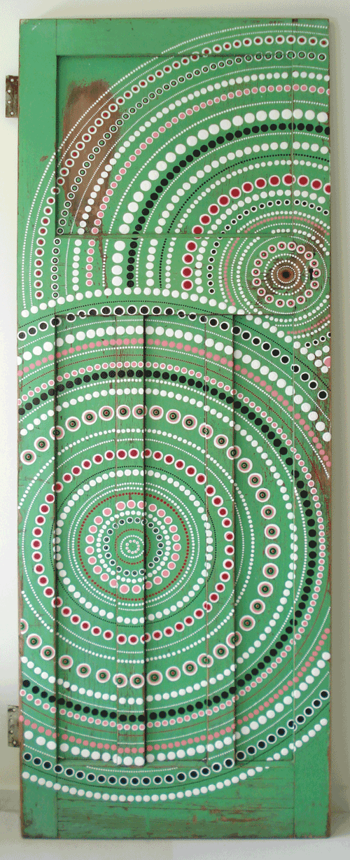 Green Door acrylic on found wooden door - 1900 x 700mm- (sold)o soldld