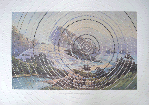 Pink & White Terraces paper chads on print - 770 x 550 mm